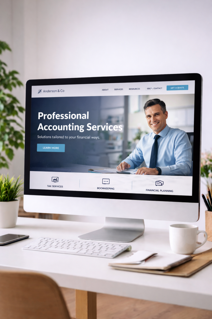 Professional accounting website structured to build trust, highlight financial services, and convert visitors into clients.